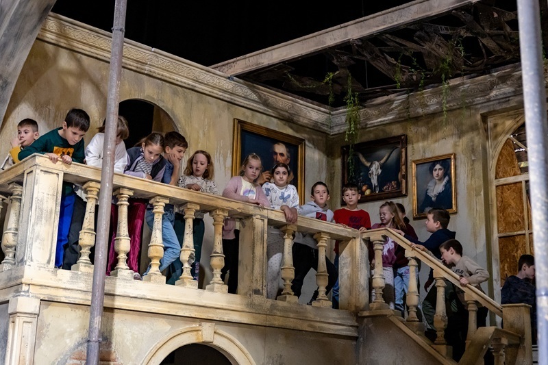 „A fiatalok három turnusban érkeztek hozzánk. Bebarangoltuk velük a színház épületét és megismerhették a teátrum történetét” – tudtuk meg Altmann Nikolettől a színház igazgatósági koordinátorától, aki gyakran vezeti körbe vendégeinket egy-egy izgalmas kulisszajáráson. „Megmutattam nekik, hogy milyen egy szövegkönyv, meséltem nekik arról, hogyan készülnek a jelmezek és a díszletek, megnézhették az ügyelőpultot, a zenekari árkot és a fejgépházat is. Kíváncsiak voltak arra is, hogyan dolgozik a súgó, mi minden történik a zsinórpadláson, és hogyan működik a forgószínpad.”